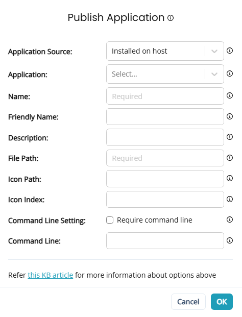 Command Line: Type the command line to pass to the executable when launching the RemoteApp