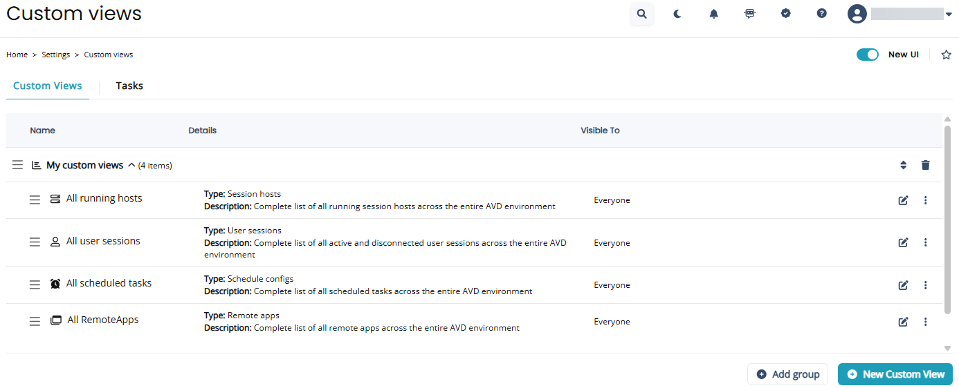 In the My custom views column, select the custom view you wish to delete, select the more actions